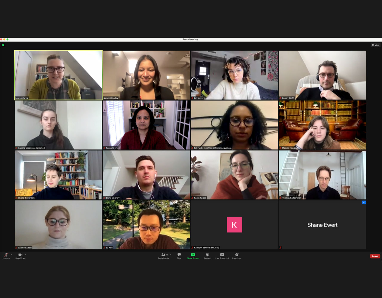 Caption — Bethany Hucks (University of Heidelberg), Suzanne Lye (UNC Chapel Hill) and Nandini Pandey (University of Wisconsin-Madison) lead a roundtable discussion on “Building Classical Communities,” February 2021.